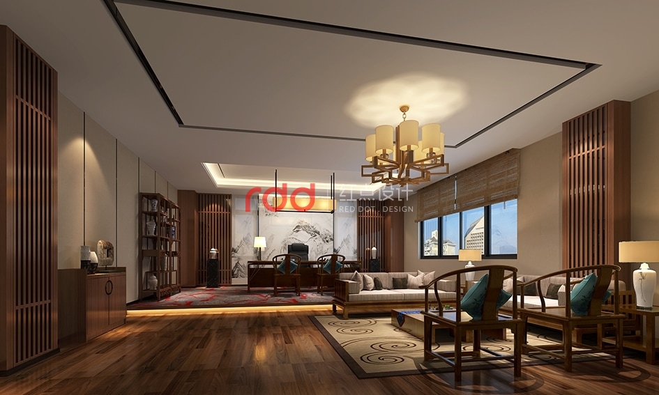 本項目是以地域風(fēng)格混搭的設(shè)計,把簡約現(xiàn)代風(fēng)格與現(xiàn)代中式風(fēng)格混搭在一起,以現(xiàn)代中式風(fēng)格為主體,現(xiàn)代簡約風(fēng)格為輔,整個前廳以深灰色為基調(diào),配合顏色鮮艷的現(xiàn)代家具,天花上以中式的吊燈為引導(dǎo),隨著中式吊燈的指引緩緩來到總經(jīng)理室。一進(jìn)門,縷縷木香撲面而來,原木色的家具、屏風(fēng)隔斷、中式的吊燈,中式的竹簾,所有的東西組合起來就是一股文人的書香氣。