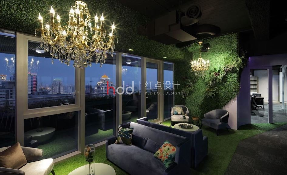 全案大致以開放式規劃為主,然而心思縝密的設計師,巧妙運用差異地材(灰色地毯與綠色人工草皮)搭配色彩界定,賦予空間條理分明的機能分區,同時保持視線與光影的自由流動。而從鋪設木地板的主舞臺區,到鋪設灰色地毯的第二舞臺之間,也刻意采用安全平整的無障礙地坪,就算很多人同時在這里舉辦活動,安全性也能獲得最佳保障。