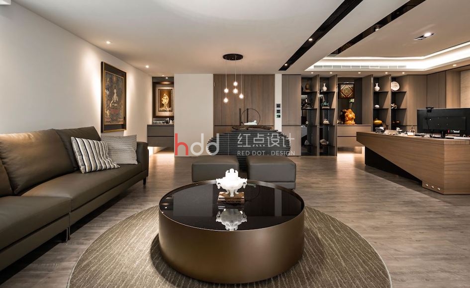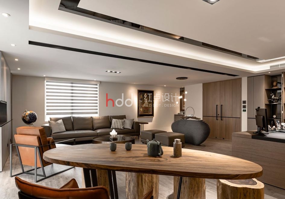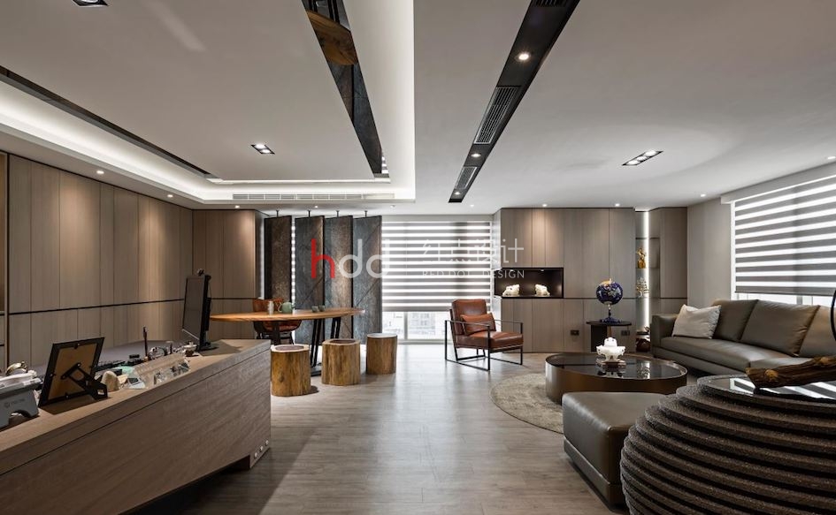 專屬辦公間內(nèi),則猶如小型版的豪宅客廳,借由辦公桌、接待區(qū)與品茗區(qū)的各自鋪排,置入豐富的使用機能,并綴上沉穩(wěn)建材肌理、明亮舒適的采光效果,體現(xiàn)高層主管的名家氣度! 會議區(qū)兼具員工休憩主題,于靠窗處安排一整排休閑吧臺,讓員工能夠沉浸綠意、感受天空,獲得工作時的放松喘息!