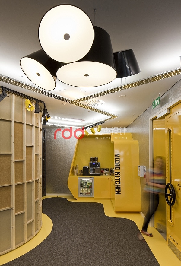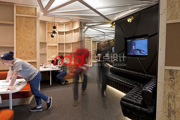 豐富有趣的場景真的一一實(shí)現(xiàn),包括隨性的座位或沙發(fā),以及一面宛如星光大道的YouTube名人堂走道,還有全部由公司內(nèi)部制作并可以立即制播、放送到各角落平面螢?zāi)坏膶I(yè)設(shè)計(jì);另一邊有著天鵝絨簾幕的電影放映室,放著舒適抱枕的軟墊沙發(fā)、皮椅;”造物主空間”( Creator Space )是設(shè)計(jì)師的一個(gè)心意,讓 YouTube 內(nèi)部的所有”制片人”盡情享受這個(gè)辦公室的神奇創(chuàng)作過程。這些照片中只是幾個(gè) YouTube 創(chuàng)意辦公室設(shè)計(jì)的亮點(diǎn),好玩的細(xì)節(jié)得要各位睜大眼睛搜尋。透露給大家, Freshmore 團(tuán)隊(duì)最喜歡的設(shè)計(jì),是那間復(fù)制了英國家喻戶曉的電視人物 Del Boy 家的客廳。如果是你,最能提高工作斗志的又是哪個(gè)場景?