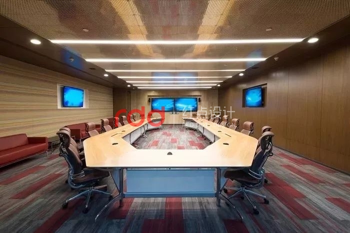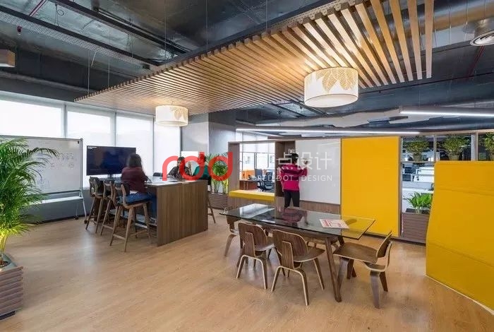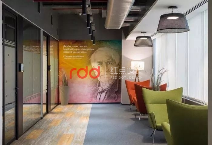 他們在每一樓設置被稱作為「起居室」的空間,放上了隱形屏幕和移動書寫板,極大提升辦公室的團隊合作與工作效率。