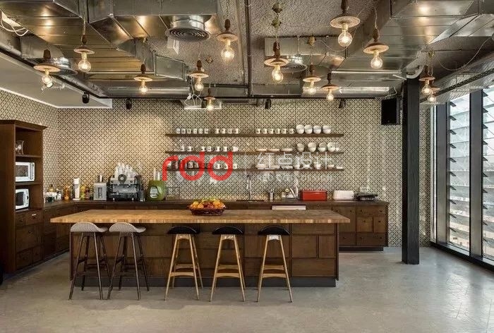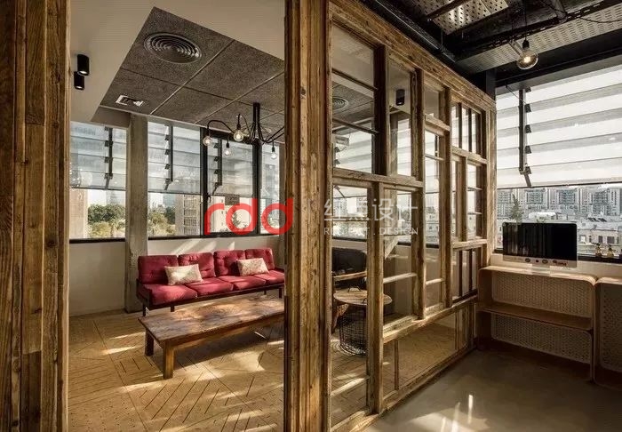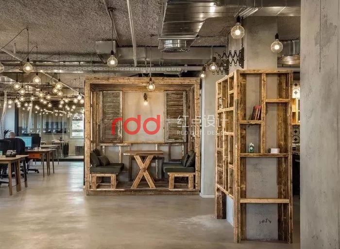 因此整體環(huán)境氛圍非常復(fù)古,混凝土墻壁與木質(zhì)家具相得益彰。