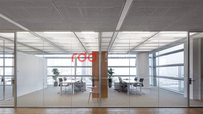 所有辦公室和會議室均采用雙層超白玻璃隔斷,保證隔音的同時將自然光和視線交流最大限度引入內側大空間。