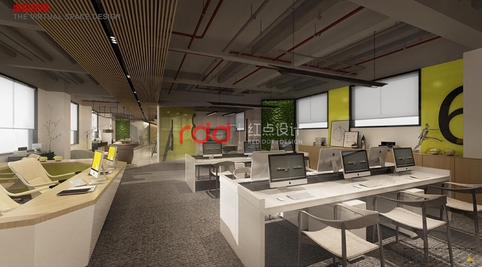 學(xué)校是學(xué)生開拓創(chuàng)新、汲取知識(shí)的海洋。在這樣即嚴(yán)謹(jǐn)又自由開放的空間里,需要一個(gè)有品質(zhì)、有格調(diào)、舒服的辦公空間。設(shè)計(jì)師運(yùn)用了工業(yè)風(fēng)與現(xiàn)代風(fēng)格結(jié)合在一起,以深灰色的裸頂拉伸了空間的高度,配以燈光效果及木飾面的墻身,讓整個(gè)空間更寬敞明亮。菱角分明的背景墻及咖啡吧臺(tái)的設(shè)計(jì)給整個(gè)柔和的空間增添了幾分硬朗及豪邁的氣勢(shì)。